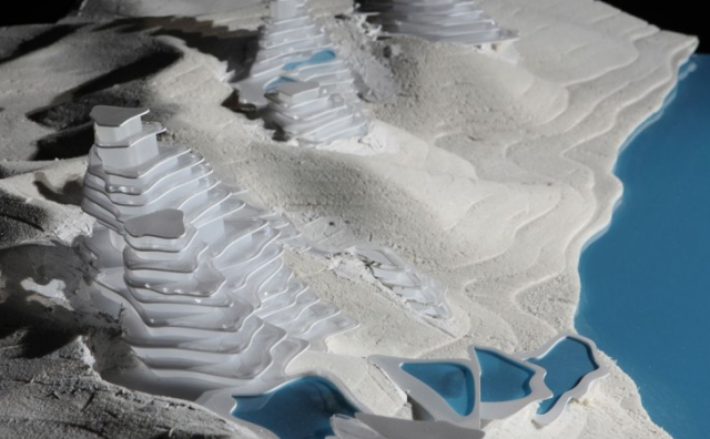 丨此处山水相依、草木茂盛,本为木气旺盛之地,但通过人为加工,营造出沙滩的景观。楼群本身的设计又为层叠状,从远处看去,好似一块巨大的山石,被大自然一层层打磨成这般。建造则破坏她的原生态;不建造如此宝地令人垂涎,别具一格的利用西北戈壁滩上的景观,充分考虑到了人与自然和谐共处的因素,可谓良苦用心。