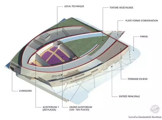 新会展中心是经济振兴计划的关键一环,并作为新旧之间的连接,其最初的设想是为蒙斯市建造一个新的标志性建筑。从观景台的顶部,游客可以远眺城市离市中心被联合国教科文组织列为世界遗产的17世纪的钟楼塔、由圣地亚哥•卡拉特拉瓦设计的新火车站和La Haine河。12,500平方米的会展中心呈现出对比几何的表达形式。该中心设有一个宏伟的入口大厅、三个礼堂、一处多功能活动厅、会议室、办公室、餐厅、地下停车场以及公共屋顶露台。