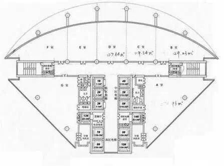 设计:这栋楼外围突出了窗户的网格式结构,带来的是凹凸有致的精确干练。但是采用网状结构像在河边捕鱼,马路为河,大楼为鱼,挣脱不得。配合大楼采用的色彩,增加一种黄昏末日之感,结合前面说到的大楼构造,员工在中规中矩的同时,未免会思维受束缚,公司的制度太过严厉,反而适得其反。