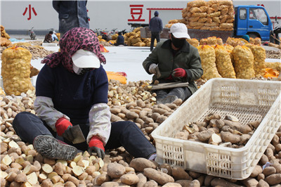 小小和微型薯经过分级、储藏,准备第二年拉到内蒙、河北大田里繁育。