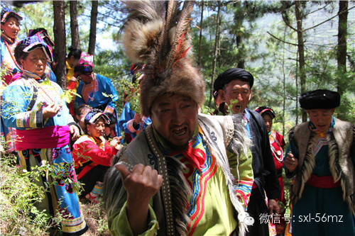 瓦尔俄足的传承人余新保(羌族名热基保)带领寨民们开始“唱跳”祭祀,余新保挑拇指领头,其余寨民手持一束野花或松枝紧随其后,唱着粗犷的歌曲,顺时针在松林间蛇行
