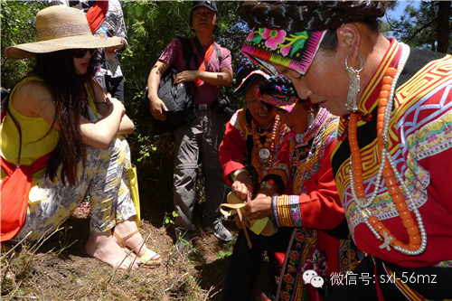 “地球小姐”秉承环保、慈善理念,敬山祭祖仪式结束后,2位地球小姐与释比一起把神台前的杂物拣拾干净。