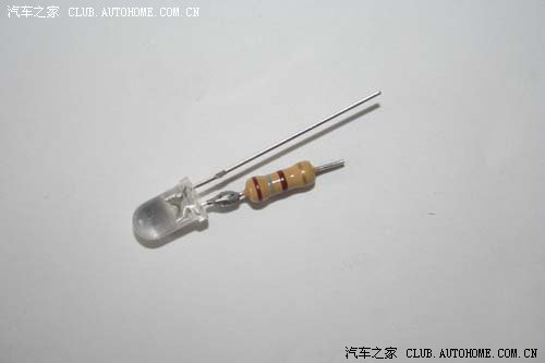 灯泡上有两隻脚,长的為正极、短的為负极,需将电阻与二极体安装於正极上,将正极端剪断。