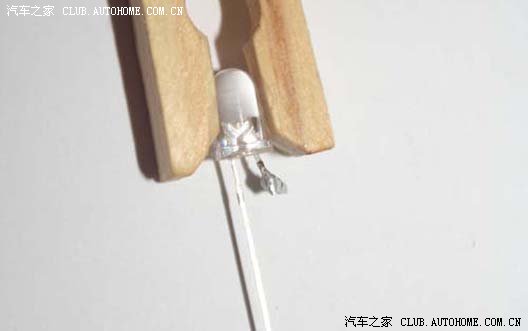 建议大家可以买个木夹子将LED灯泡夹注,这样灯泡才不会在焊接时跑来跑去。