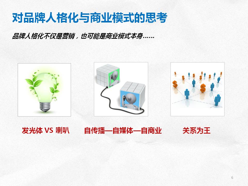 这一页只简单说一点:过去我们把构建品牌的人格普遍地当成一种营销方式,而不是商业本身,今后则未必;