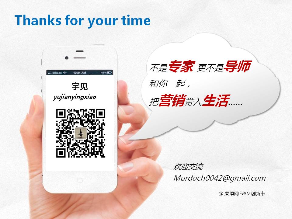 演讲同时得到了@Sky、@叶梓颐、@谢昊、@羽之 等多位宇见营销俱乐部同学的热情讨论和智力贡献,借此深表感谢!以下是我的演讲实录: