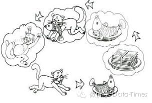 3:猫非常饿了,想大吃一顿。销售员过来说:“猫先生请看,我这儿有一摞钱,能买很多鱼,你就可以大吃一顿了。”话刚说完,这只猫就飞快地扑向了这摞钱——这个时候就是一个完