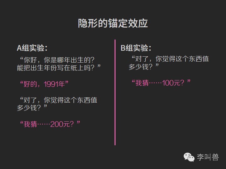 这是因为之前写的出生年(比如1991)影响了消费者后续对价格的判断,即使他们都否认自己受到了出生年的影响。