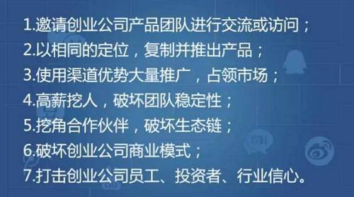 UC创始人何小鹏有一次说,打击创业公司,巨头惯用这七招。