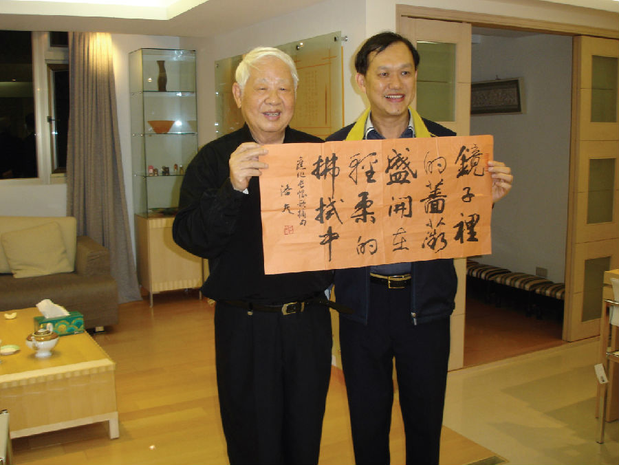 洛夫欣赏白居易的诗,并亲书悬挂客厅:“绿螳新醅酒,红泥小火炉,晚来天欲雪,能饮一杯无?”
