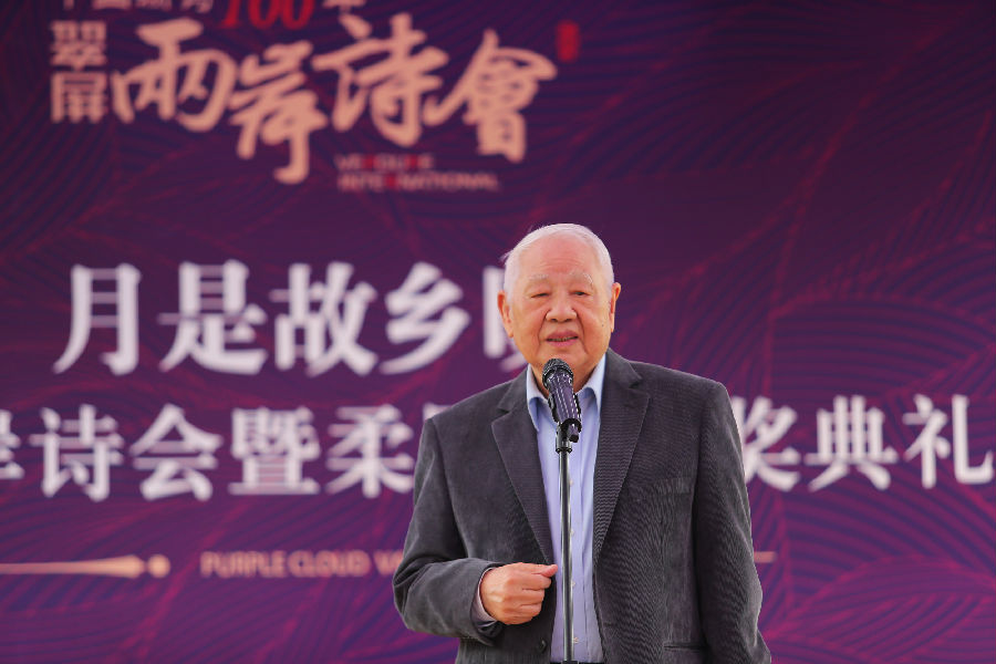 洛夫致辞:我是第五次来南京,每一次到南京,我对南京的印象都变得更好,越来越发现南京是一座诗歌之城。