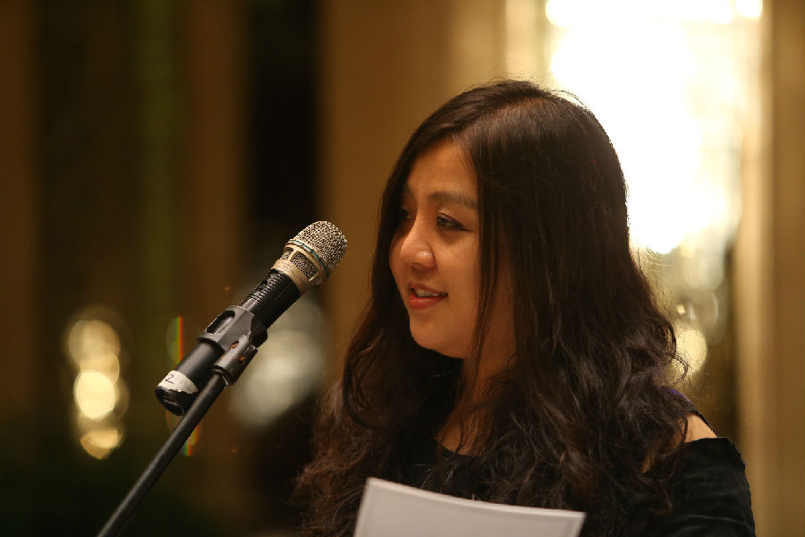 著名主持人、江苏景枫投资集团总裁助理、营销中心总经理顾红艳,朗读洛夫的《湖南大雪》,被洛夫及夫人,点评为:“朗诵得非常好!”