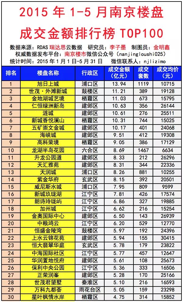 【最新榜单出炉了】2015年1-5月南京楼市销售排行榜TOP100