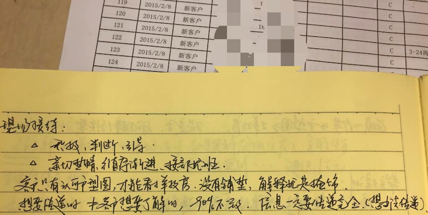 我有一本“客户笔记本”,上面记录了客户的基本信息,以及他的购房逻辑,家庭成员,购房预算等等……通过这个笔记,重点客户就可以好好把握了,项目有关键节点或有活动的时候,就给他们打电话、发短信,效果很好。
