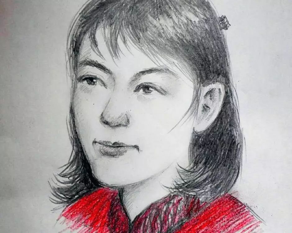 我快跑了几步从第四辆车回头看她:穿着红衣,红衣上没有囗袋,高领,领上绣有金钱的图案,是对襟式的长袖衣,近似现在的T恤,但中间用的是中国式的布料阴阳扣,她身材窈窕,身高应在1米7左右,因为和她身后两旁抓着她肩膀的解放军等高。一阵风刮过,吹开了遮住她脸厐的长发,啊哈,漂亮,真漂亮:瓜子脸,长长的向两边弯曲的眉毛,有着一双不在乎但有点说不清楚的大眼睛,鼻梁高,鼻下的嘴,上唇与下唇搭配得非凡地好还有那下颚向上微微翘起,给面厐增添了几分美也增添了几分庒严,美丽升华了。