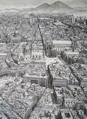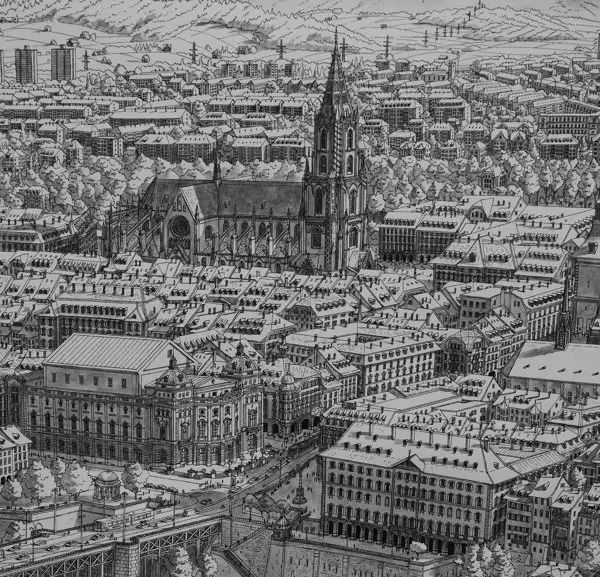 虽然是写真并且细致到近可乱真,但铅笔画并非数码相片,我们能感受到画家对城市的高度理解和细腻温情。