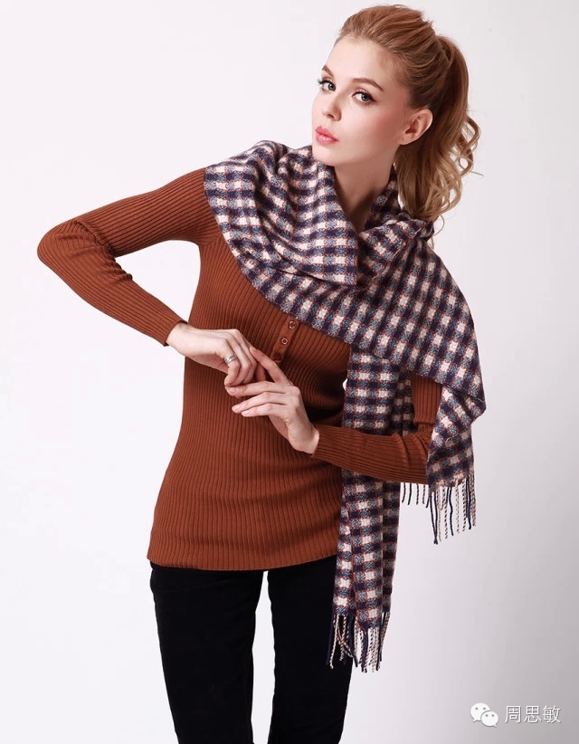 搭配法则:肤色较黑的,不宜选用深红、深紫、深灰、黑色等深暗色调的围巾,而以淡灰、湖蓝、玫瑰红等颜色为佳。