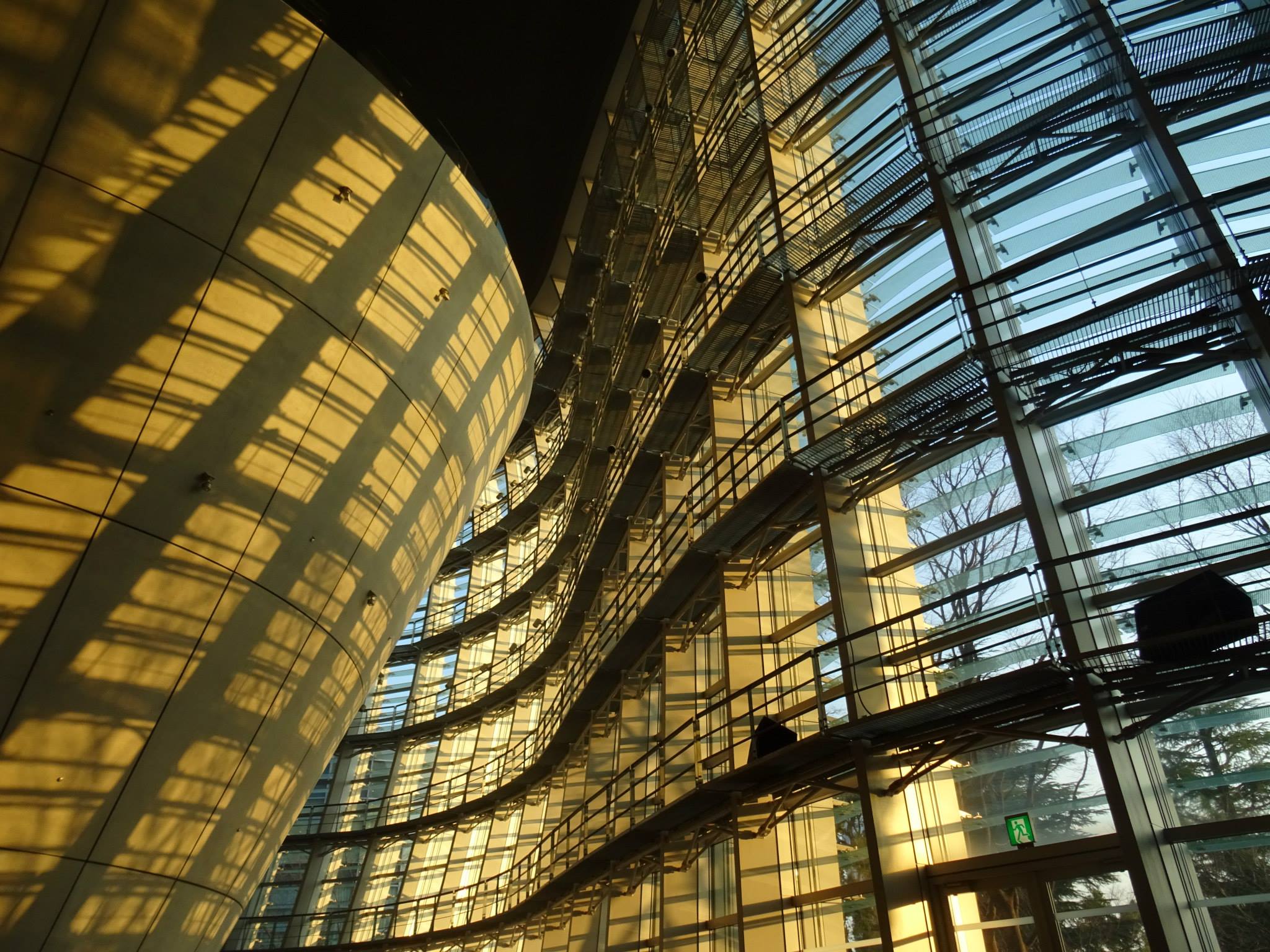 位于东京六本木的国立新美术馆,其建筑是由黑川纪章设计,占地3万平方公尺,楼地板面积为47,960平方公尺,为日本目前楼地板面积最大的美术馆。美术馆是外观全部使用玻璃的建筑形式,在此可以充分感受建筑光影的完美演绎。