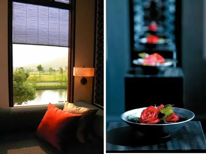 这里的泳池周围都是落地窗,所以可以边游泳边欣赏天云山林,会感觉自己像在大海里游泳。等到傍晚太阳半落,美丽如宫殿的室内泳池与户外温水按摩池就成了黄昏时光最幸福的生活剧场,禅声蛙鸣环绕更添野趣,整个富春山居是我们灵魂飞翔的无际版图。