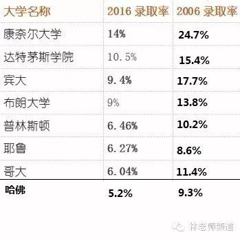 2016年美国常春藤大学本科录取数据于上周公开,哈佛录取率仅为5.2%。美国本科录取,好比年度盛会,注定是少家欢喜多家愁的结局。我发现不少人喜欢跟2015年作比较,我个人更好奇长线的变化,因此特意找出了2006年的数据做了一次10年数据横向对比,如下: