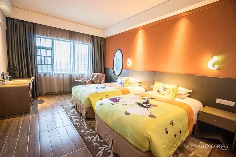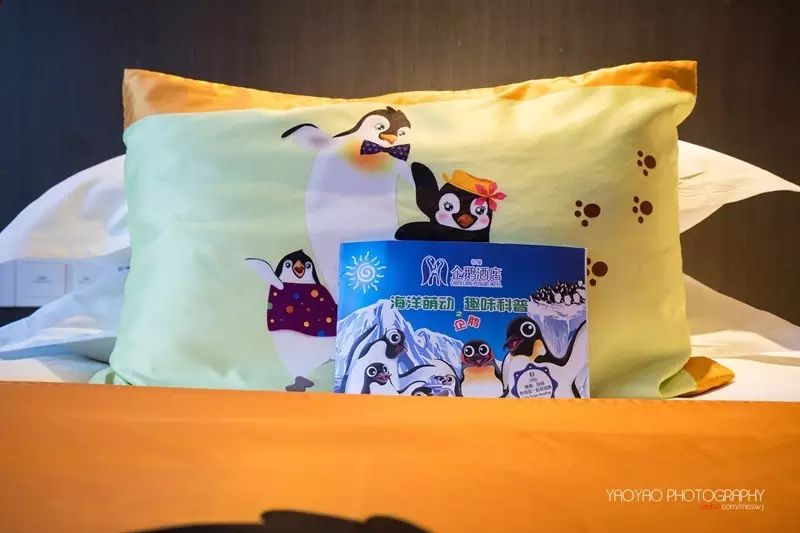 而入住的房间同样都是以萌萌的“企鹅”为主题。企鹅被子、枕头、洗漱品,墙画等,让人一下子感觉身在童话世界,不由得也变得童真起来了。干净舒适房间环境,让我们养足了精神,准备明天就开始了“海洋王国”之旅。