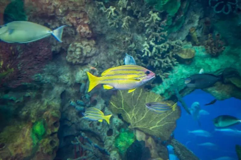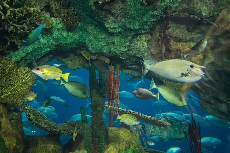 要展出鲸鲨及其她魚類、珊瑚礁、海龙、海月水母、章鱼、花园鳗、多彩珊瑚、鳗鱼、鳐鱼、萨莉娜莱蟹、海葵、黄头虾虎鱼、寄居蟹、虾姑等海洋动物,不但可以