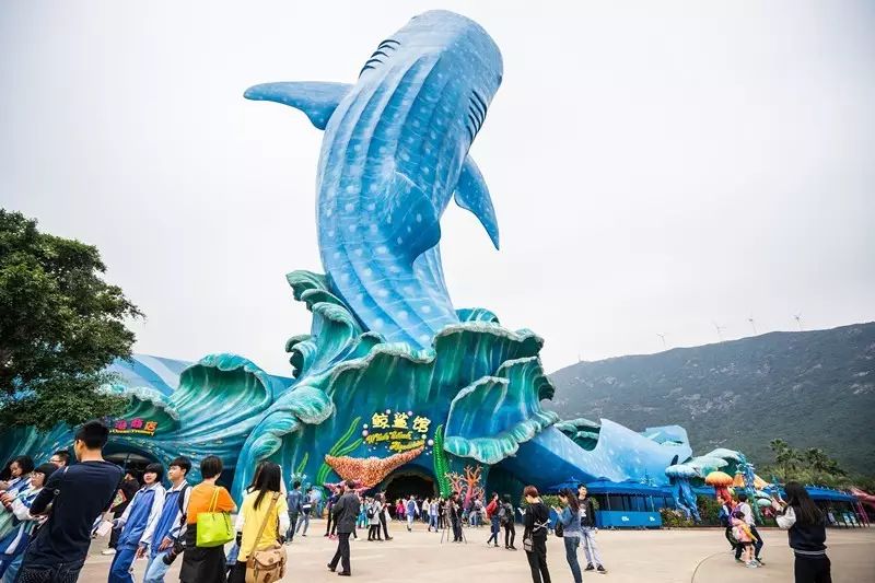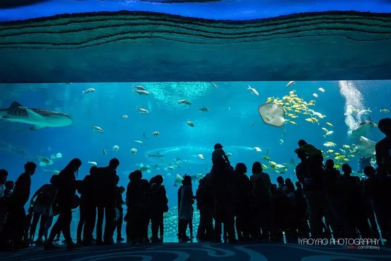 入园的第一站,我们去了最受游客欢迎之一的景点:鲸鲨馆。因为里面不但有各种美丽的海洋动物,还有世界最大的“鲸鲨展馆”和亚克力玻璃。这个装着“鲸鲨”