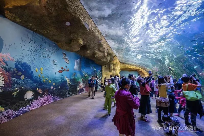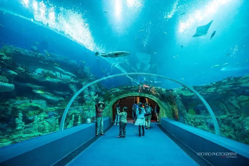 的亚克力玻璃宽达39.6米,高8.3米,厚650毫米,重达250吨,水体2.2万立方。因为其体积大所以视野壮阔,给游客带来震撼的海底奇观。这里主
