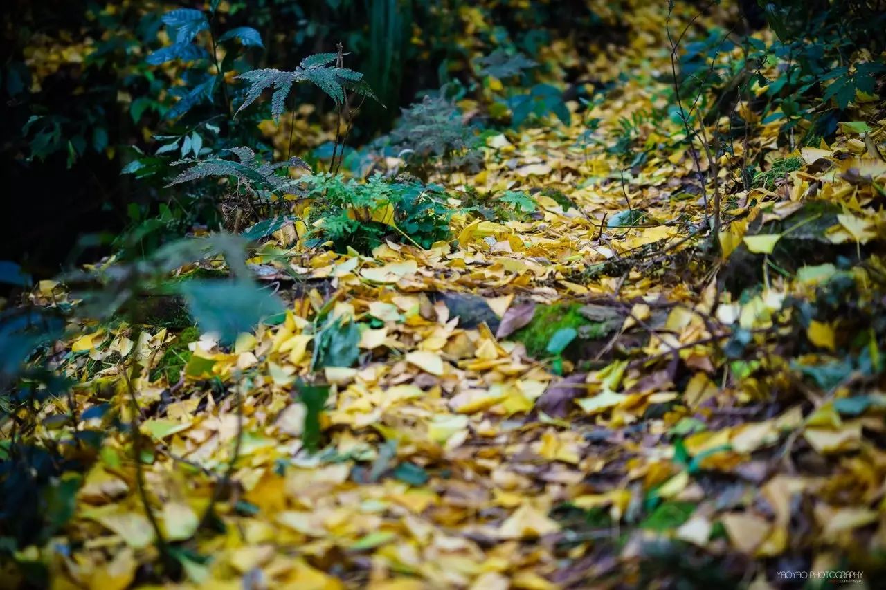 在丫山,春夏秋冬演绎着不同的变化。散落一地的金黄色银杏叶在安静地等待着,等着那个与你诉说着故事的人儿,一同感受它的美。