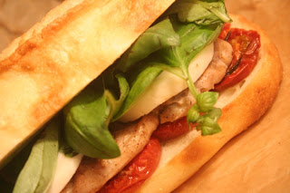 我常将烤西红柿和其他食物搭配做三明治作为午餐便当。在这张照片里,我搭配的是mozarrella奶酪,basil香草和烤鸡肉。