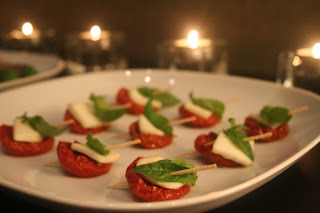 下图:和意大利的mozarrella奶酪以及basil香草,用竹签串成一串串,拿起一口一个。