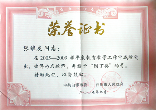 矢志不移、忠诚教育,模范履行教师职责,继续探索教育教学新路子。27年的教书育人工作,造就了他追求卓越的性格,勤勤恳恳,用园丁的精神最大限度的投入到教育教学工作中。一个党员一面旗,作为一名党员他忠诚于党的教育事业;一个教师一盏灯,作为一名教师他恪尽职守、无私奉献,用爱照亮莘莘学子前进的路途。桃李不言、下自成蹊,目前,张维发同志仍然坚持在教育教学工作第一线,继续用他的心血和汗水书写一个当代人民教师对教育事业的忠诚与无私。