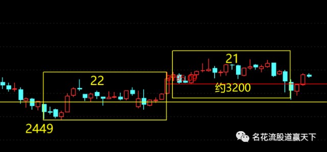 再看月线,月线有个周期的划分22与21,就看各自的你怎么理解吧,这里就不多废话了。不过重要的在3200点,二浪周期看月线,只要在3200上方都是正常的,非常复杂的震荡震荡上上下下,不知道要多久。