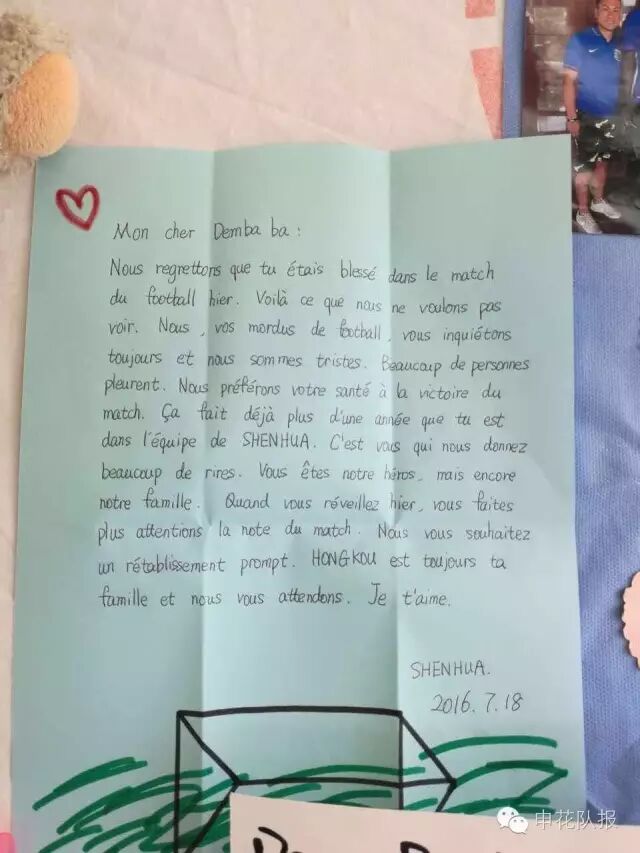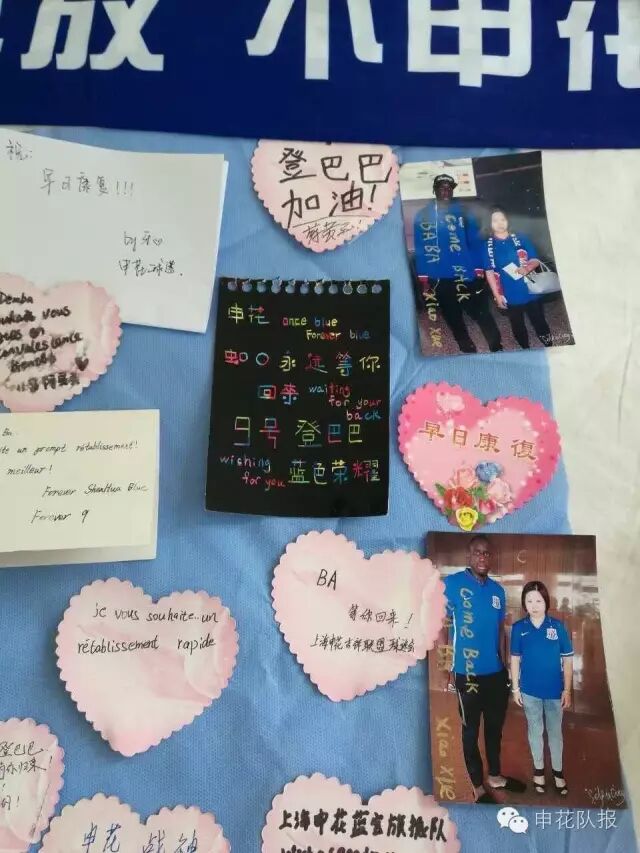 一束束鲜花、一张张卡片、一封封信件……汇成了所有人对于登巴巴的爱和祝福,大家希望登巴巴能够早日战胜伤病,回到那片他所熟悉的绿茵场。对于大家的祝福,登巴巴表示:自己会尽最大努力去恢复,早日回来和大家并肩战斗!