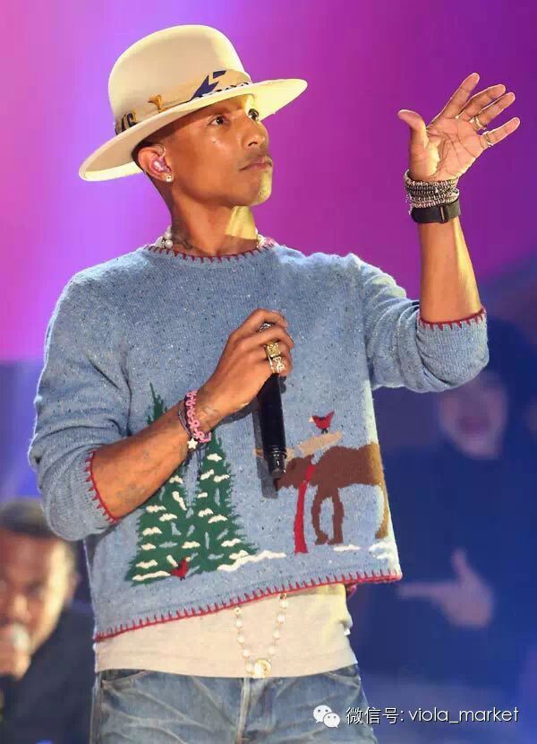 △Pharrell Williams的这顶帽子与这身毛衫似乎很登对。