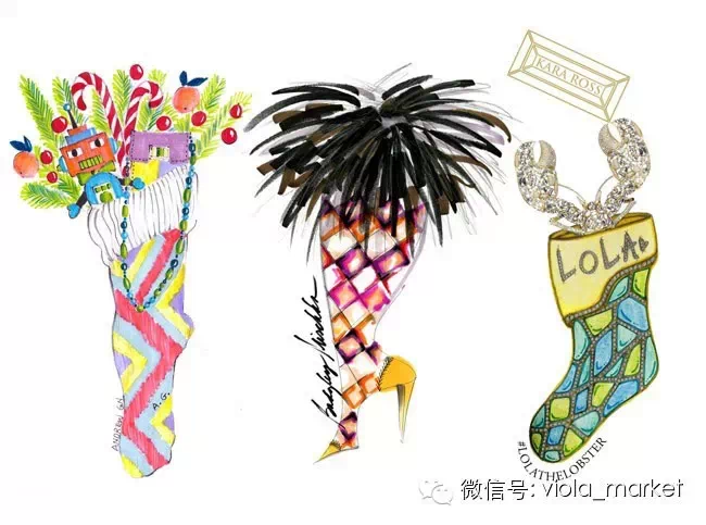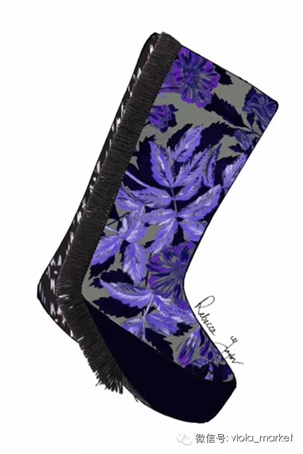△“灵感来自Marchesa最近2015春夏系列。我们使用了同样的刺绣和细节并作了一些拼贴,给了我们的圣诞袜一些吉普赛和伍德斯托克精神。”—