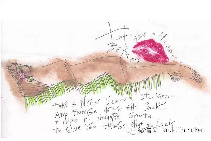 △“用一条有缝的老式尼龙丝袜,在后边加上一些流苏……希望这样可以启发圣诞老人给你一些你所没有的礼物。”—