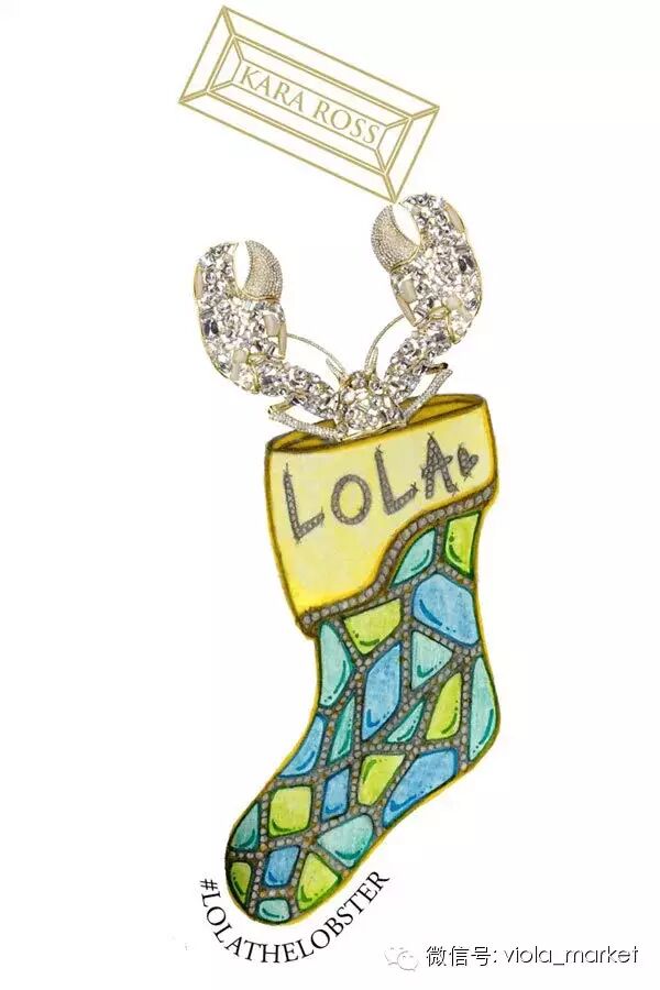 △“我重新设计了标志性的圣诞袜,充满惊喜的用珠宝镶嵌“Lola”在袜口上。一只大蝎子探出头,好像在守护自己的珠宝。”—