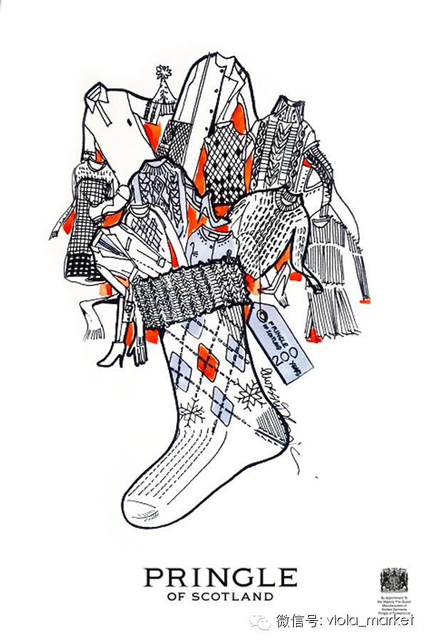 △“我的圣诞袜灵感来自开司米、手织毛衫和浓浓圣诞气氛所构成的的冬季仙境来温暖我的朋友,这是一个完美的Pringle圣诞袜。”—