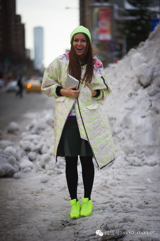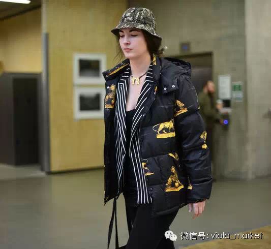 打破以往中性色系的搭配方式,选择一些色彩靓丽或者有特色的印花和图案的内搭和下装与其搭配,让羽绒服更时装化。