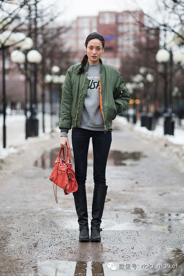 飞行员夹克可谓今年秋冬的一大流行元素,罗文的领口、袖口和下脚边是它的标志性特点。除了传统的窄小短款,尺寸稍微放大的中长款也是今冬大热。