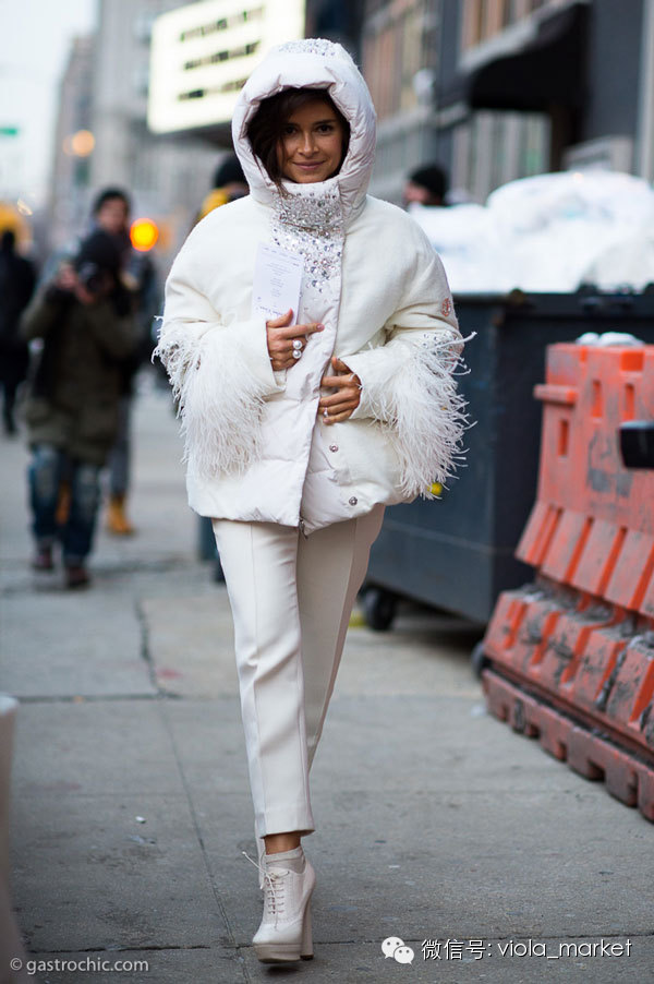 以往羽绒服常会选用鲜艳偏运动感的色彩,所以非常缺乏时尚感,那么选择马卡龙色系,或者米或白色系,以及尽量哑光质感的面料,可以打破以往对羽绒服土的印象。