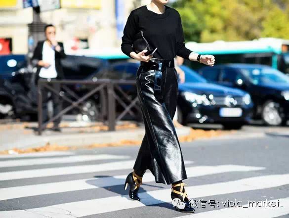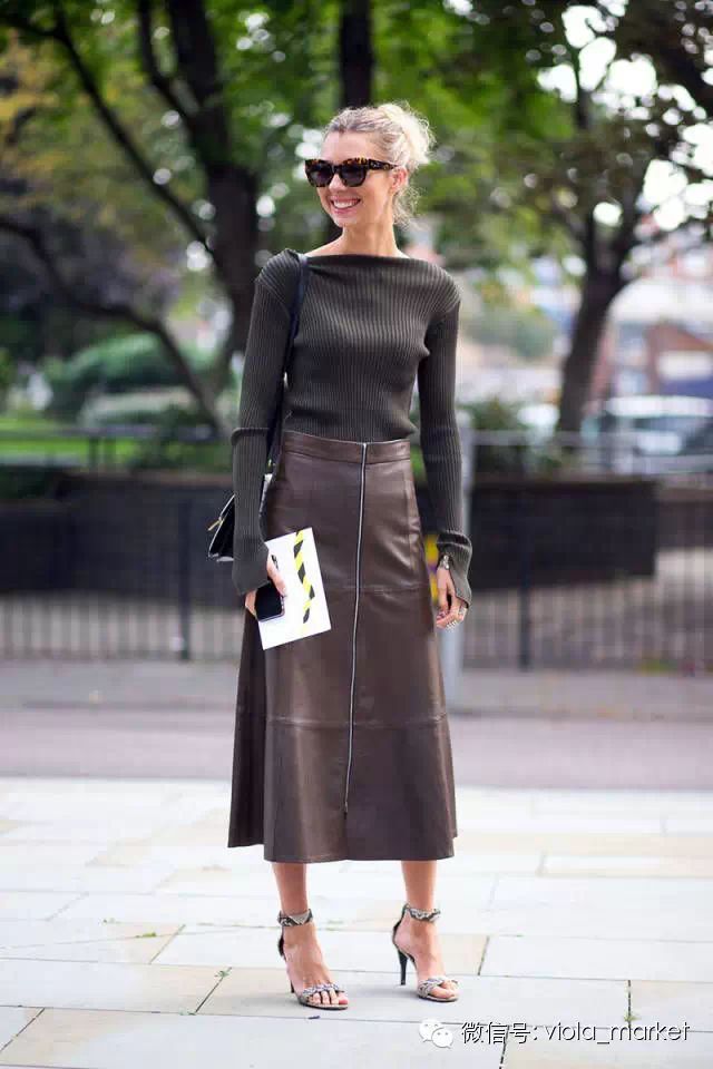 如果你有一条皮裙或者其它皮革的单品,看起来有些夸张或太过有气势不好驾驭的话,不妨试试就与最简单的基本款毛衫搭配,朴实的毛衫与张扬的皮革结合形成一种70年代式的华丽怀旧风,给皮革带来新感觉。