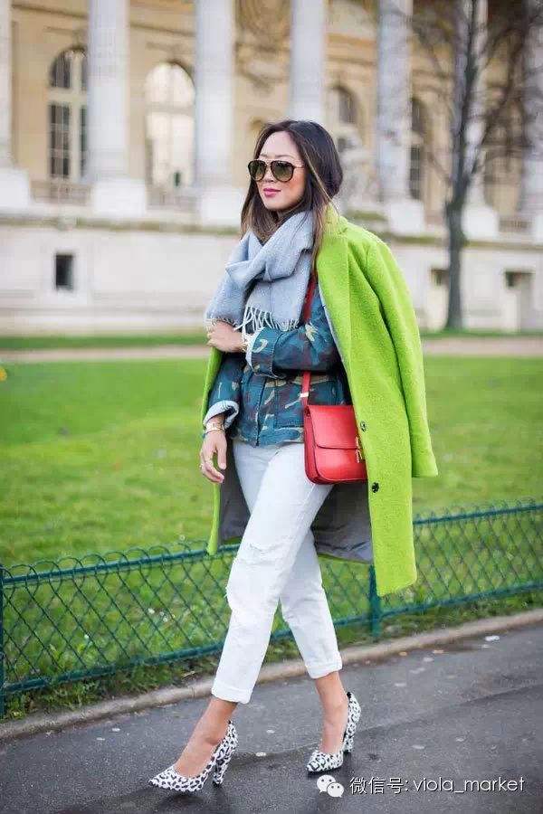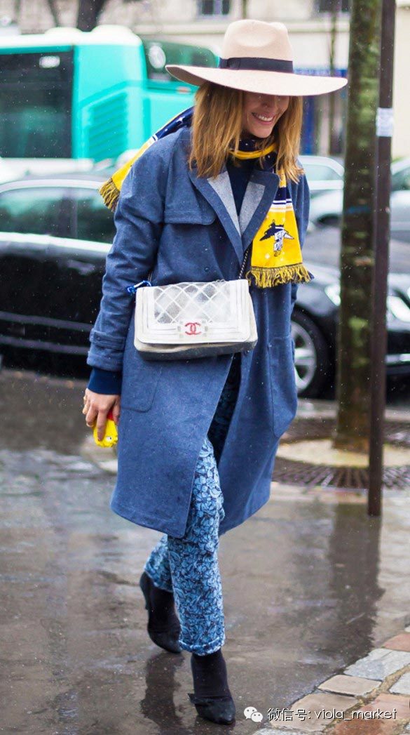 这可是街拍明星们最近正在尝试的新招数,把你的小香包,斜挎背在大衣外,重点是包包放在身前而不是侧边或身后。这种略带风趣和幽默的背法,这也是一个炫耀你的美包的好方法。