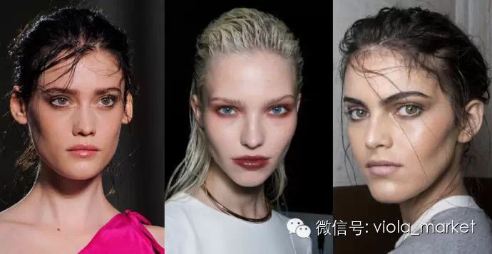 要说到近几年时装秀中出镜率最高的发型,湿发绝对是当中不能不提及的当红趋势之一,就像刚洗好头发从浴室走出、或是在健身房运动后流了满头大汗一样,这样湿漉漉的头发可不是发型师懒惰不将模特儿头吹干,而是这几年秀场上大为流行的"湿发潮",利用适量造型凝胶或喷雾顺着头发涂抹均匀,就能打造现今最受欢迎的湿发趋势。