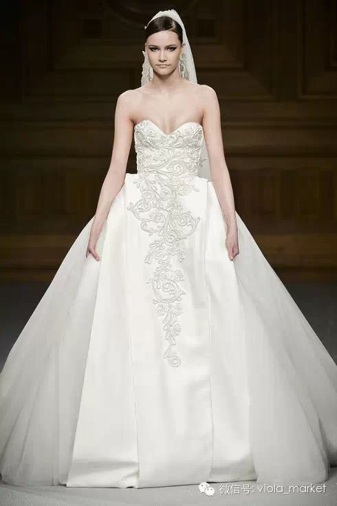 回归传统礼服的元素,虽没有太大惊艳,但也还是精致美丽的,也可算是婚纱礼服界的基本款。