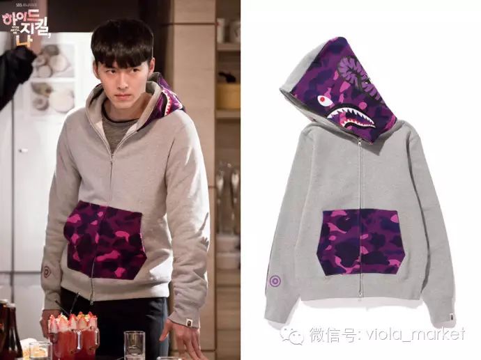 剧中男主角的第二性格可是很爱装可爱又活泼的大男孩,在穿搭上,他所挑选的款式也会偏向年轻、休闲一点的款式。如这款连帽运动外套,仔细看胸前的纹路,你应该不难猜出是来自Bape,没错,这是Bape2014春夏限量款,帽子上有个鲨鱼的图案,超有童趣!