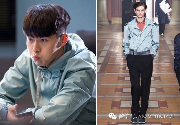 看到嘟嘴的玄彬,就知道一定是扮演分身而不是本人!这件水蓝色的风衣外套来自Lanvin 2015春夏款。