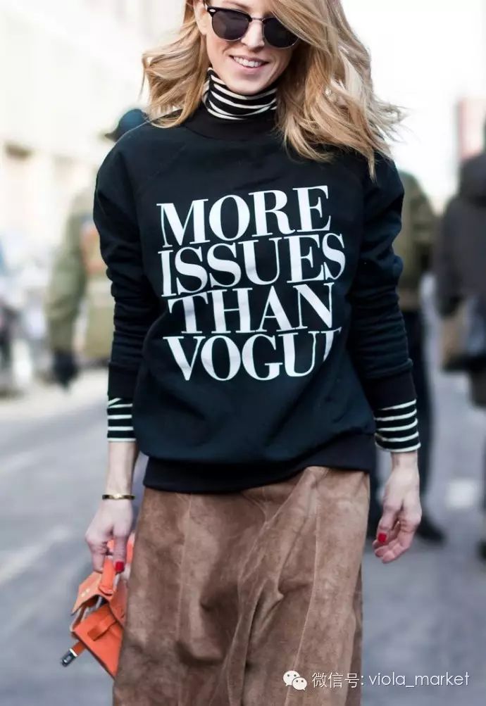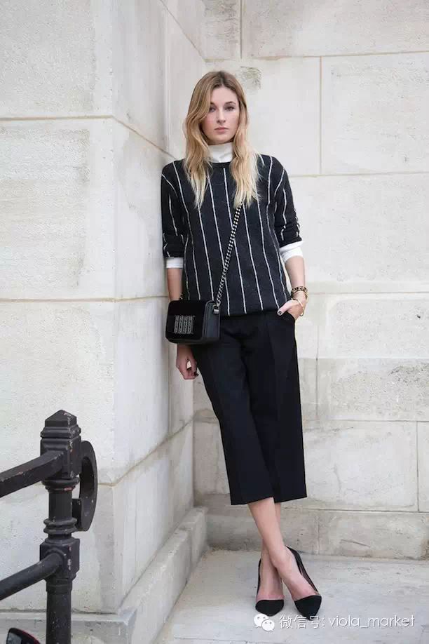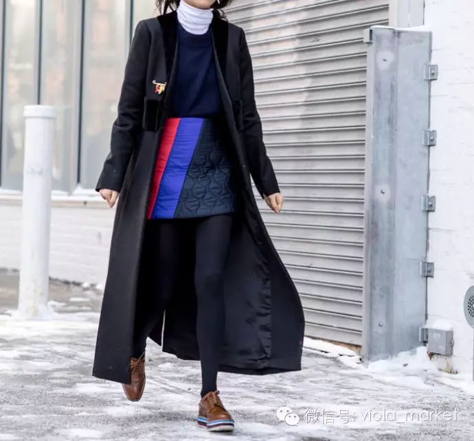 在卫衣内增加一点薄薄的温暖,领口增加一道撞色的装饰。这种混搭法,既简单又出效果,特别是黑白高领T,快快学起吧。