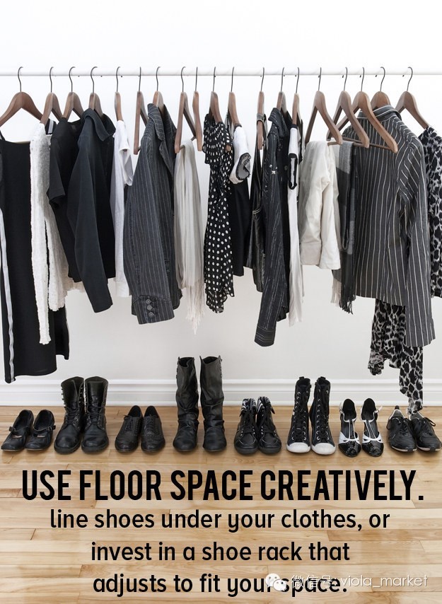 *你可以挖掘衣柜的上下空间,将不穿的厚重的冬季衣物分别放进上下空间。如果你的衣橱是开放式的,不要忘记地板的空间。